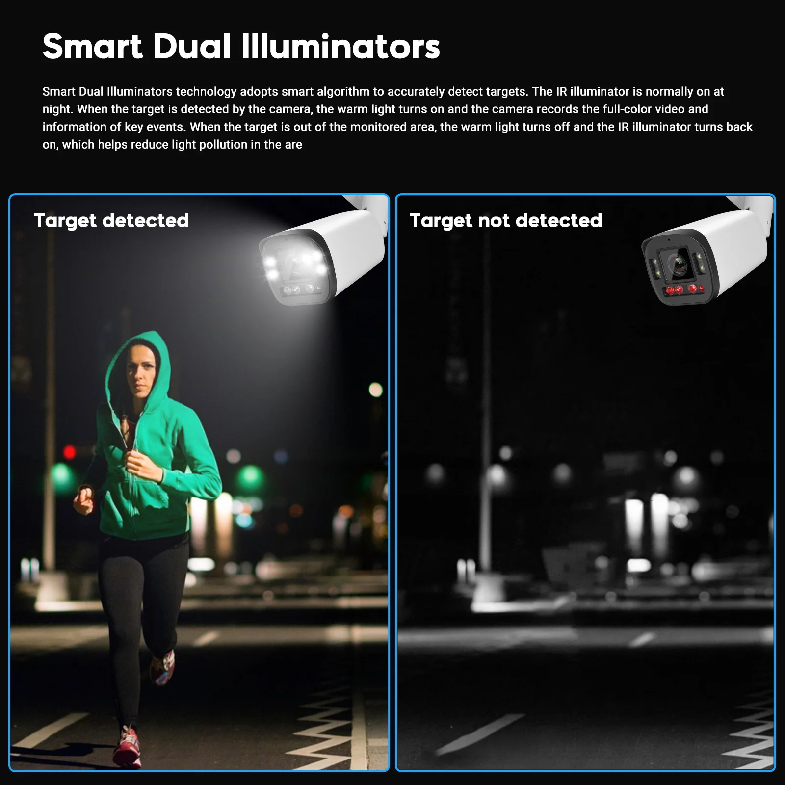 4Pcs IR Light and IR DNR technology delivers up to 100ft smooth and clear night.